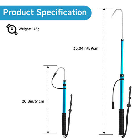 1. Aluminium alloy pole, rubber handle, stainless steel hook.