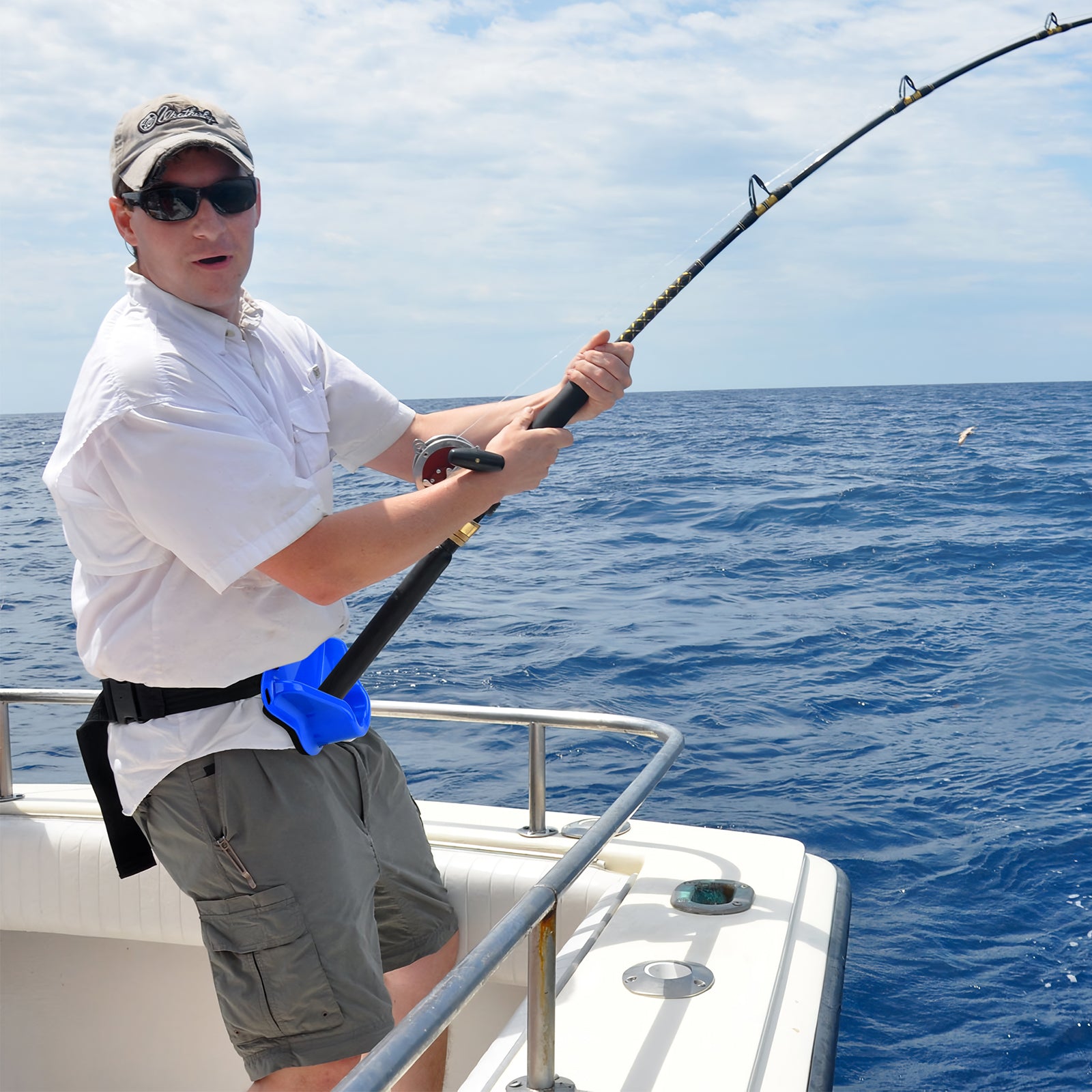 1.The fishing belt is made of high quality plastic. Soft EVA padding inside the belt protects your lower back from injury. It reduces the pressure on your waist when fighting with big fish and makes fishing easier.