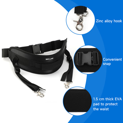 2. The wide belt harness is adjustable and you could adapt it to the most comfortable position as you like.