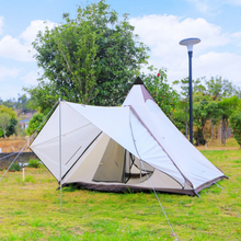 4. Press down the tent cover, pull up the main pole and support the tent.