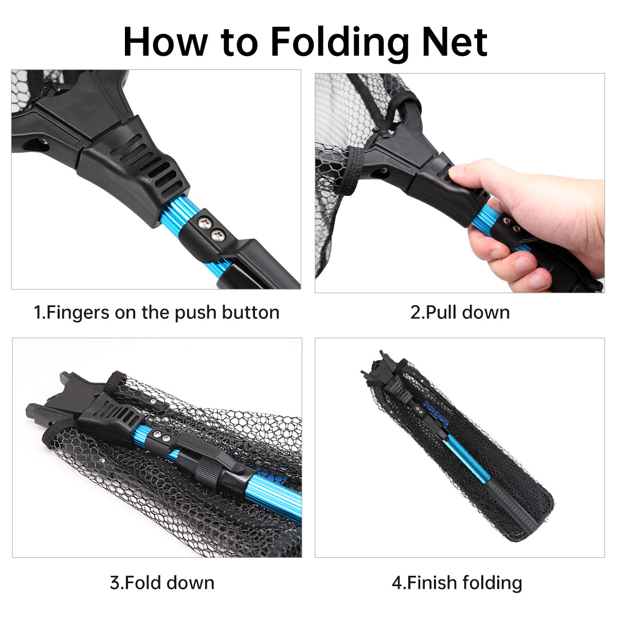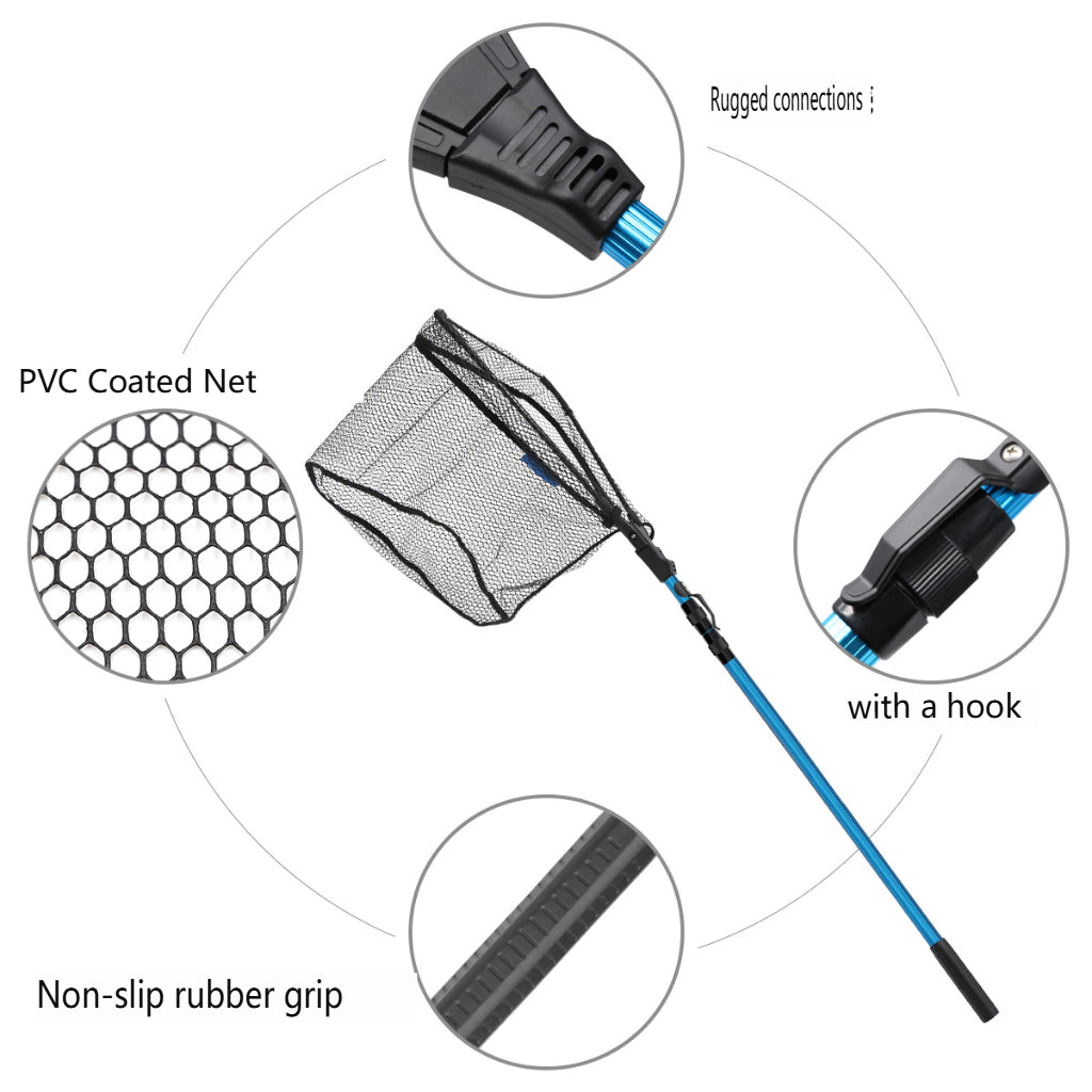 3.Retractable Fishing Net: Foldable design, retractable pole and ultra-lightweight frame ensure you can carry and store this net easily, and the wear-resistant EVA handle can help you catch fish safely and steadily.