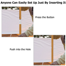3.Push-button locking mechanism simplifies installation: the two sections of poles can be pushed into the support holes and removed by pulling the spring after use.