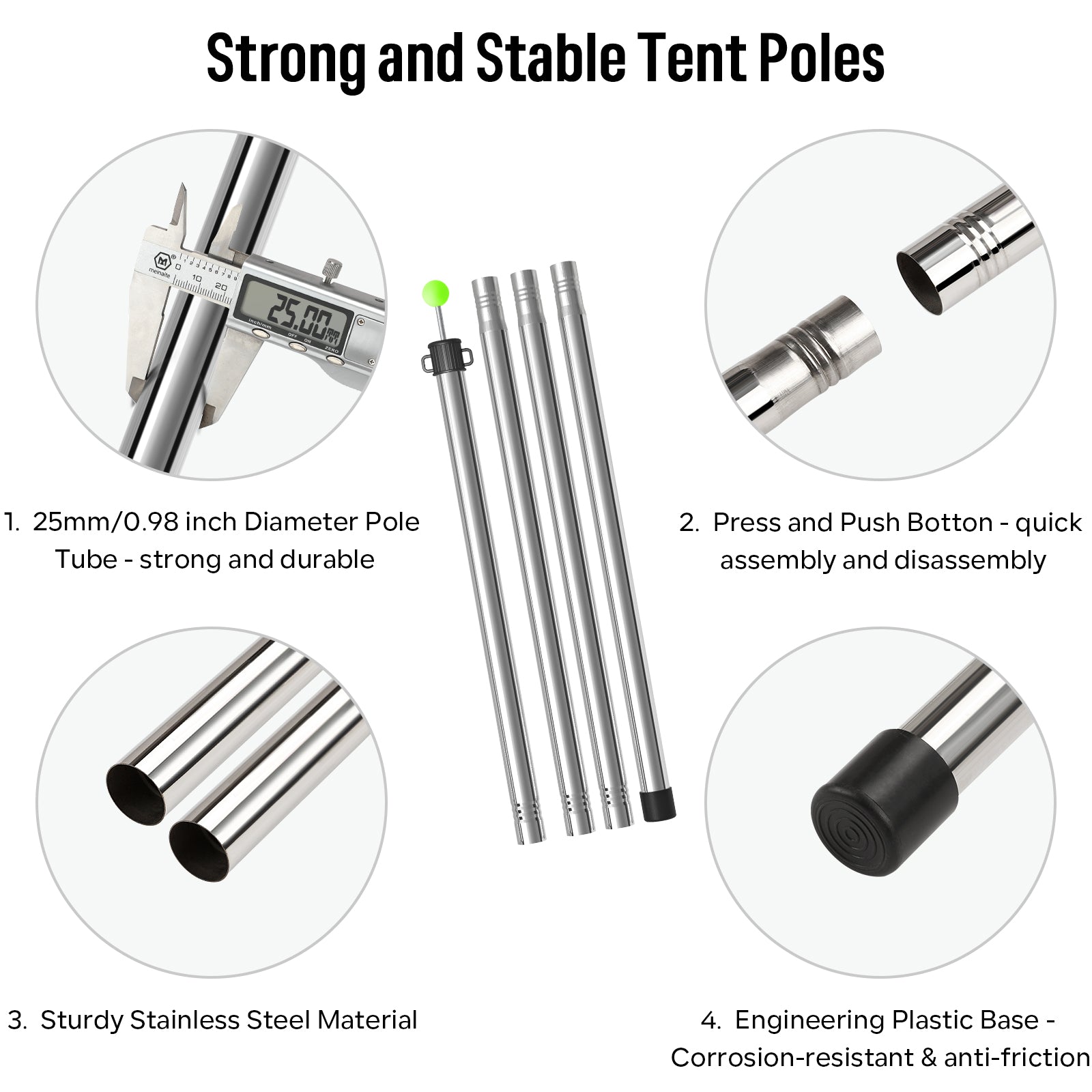 1.Our telescopic tent poles are made of high quality stainless steel, sturdy and rustproof.