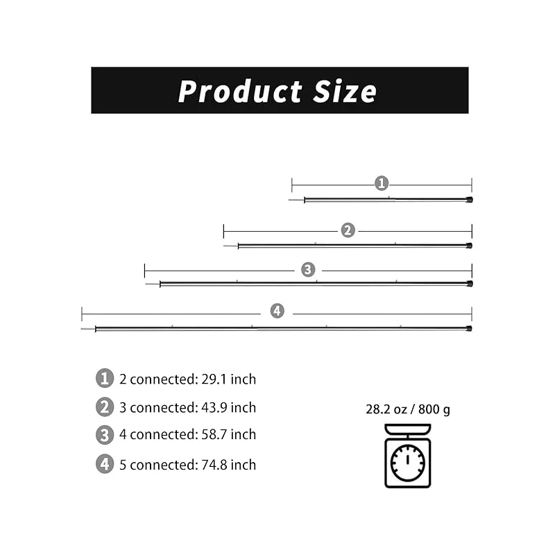 3.Adjustable poles with adjustable height extend from less than 16 inches to 75 inches, allowing you to get the height you need to stretch your tent tarp.