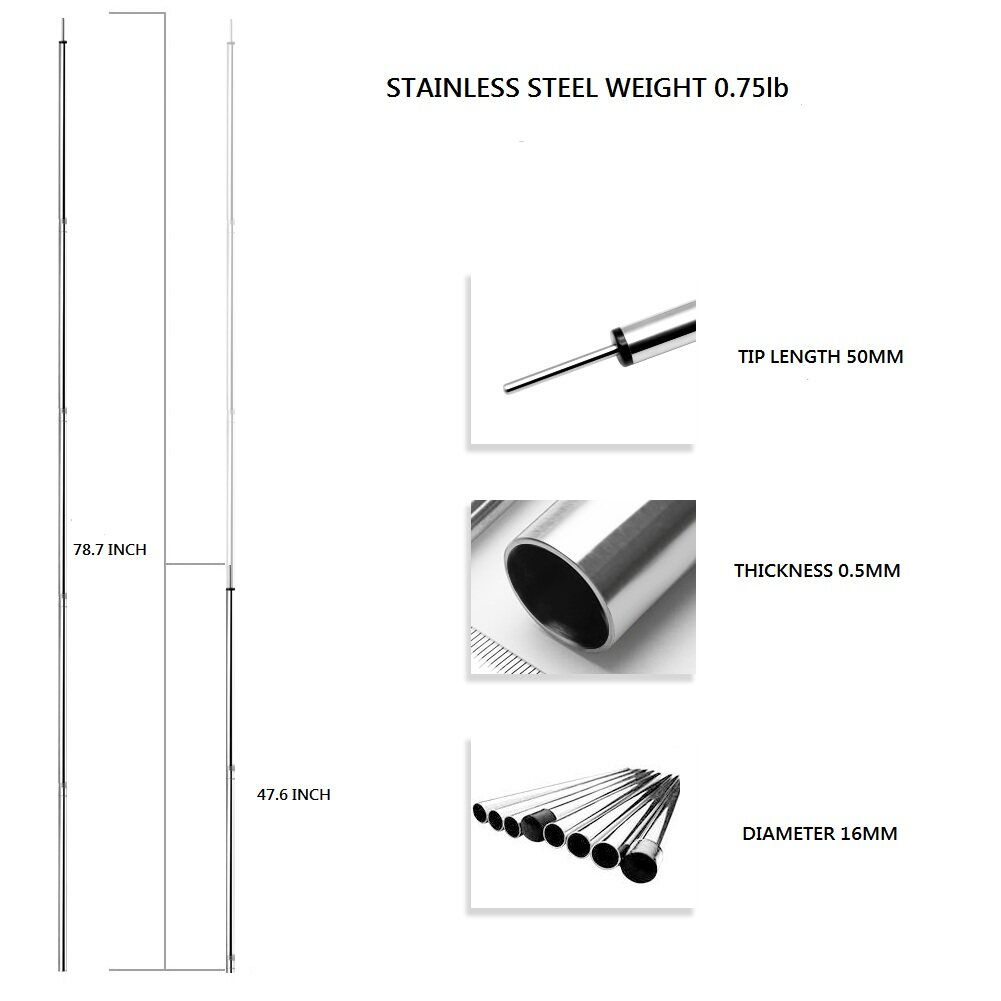 1. Size: Approx. 16 mm diameter x 2000 mm height (effective length 1950 mm + tip 50 mm) Storage size: (approx.) 450 mm x 200 mm