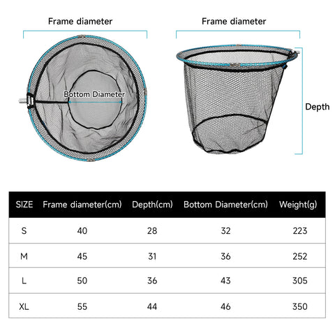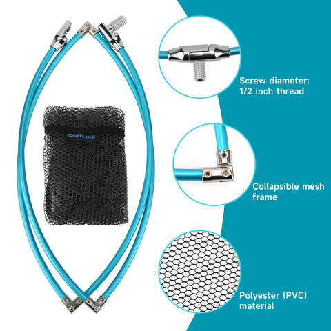 1. Mesh frame size: 40 × 40cm, 45 × 45cm, 50 × 50cm, 55 × 55cm; Net depth: 28cm, 31cm, 36cm, 44cm; Material: Aluminum (frame) mesh: Polyester (PVC); Pipe diameter: 8mm/wall thickness: 1.2mm, screw diameter: 1/2 inch thread (12mm).