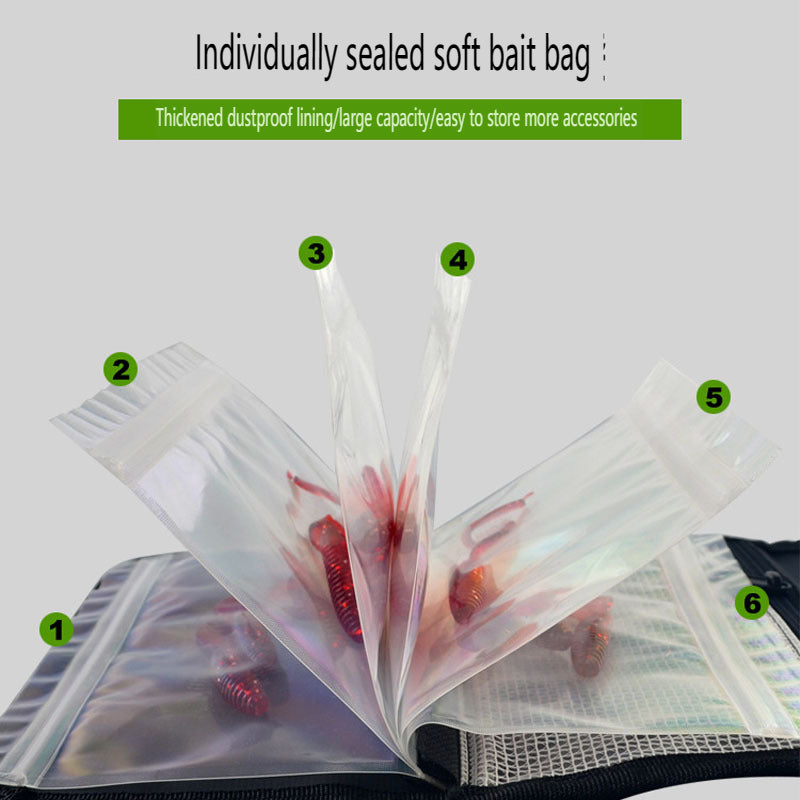Portable self-sealing bag soft bait fake bait storage bag waterproof wear-resistant multifunctional fishing tackle storage bag