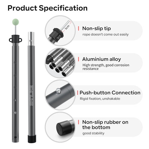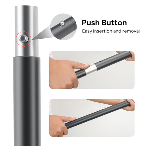 3. Simple Button Lock Mechanism Simplifies Your Installation Process: Just push the 2 sections of poles into the holes by buttressing,after use,simply pull the spring to disassemble.