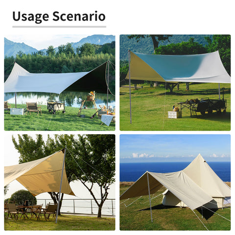 4. Anti-Slip Plastic Cap Strongly Supports Your Camp:The updated plastic cap at the bottom of the tarp poles can reduce slipping while eliminating punctures when used to support the tarp,tents, sun shelter.
