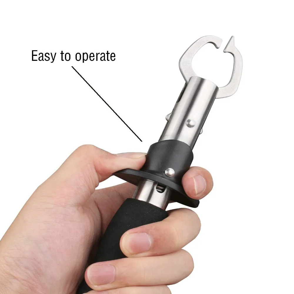 2. With a coiled lanyard, easy to carry, don't worry about the loss of fishing clips3. Ultra-wide opening allows even large fish to be easily gripped, easy to grip and quick release lever, and heavy spring action ensures a firm grip.